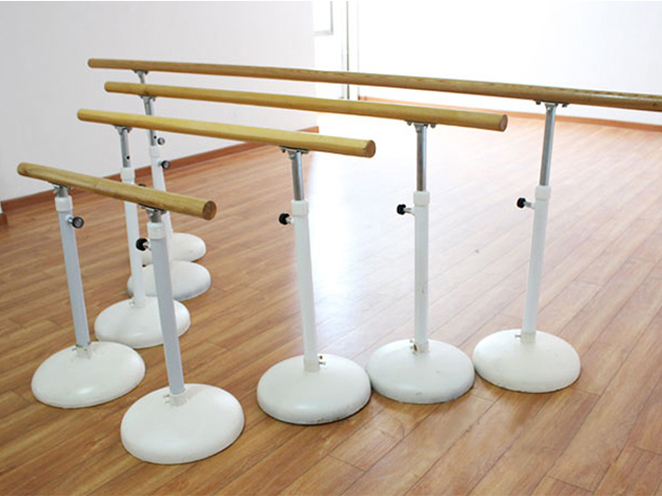 可以隨便移動使用,適用于臨時場地,如舞臺、臨時訓練等,可以通過升降桿來調(diào)整把桿高度。